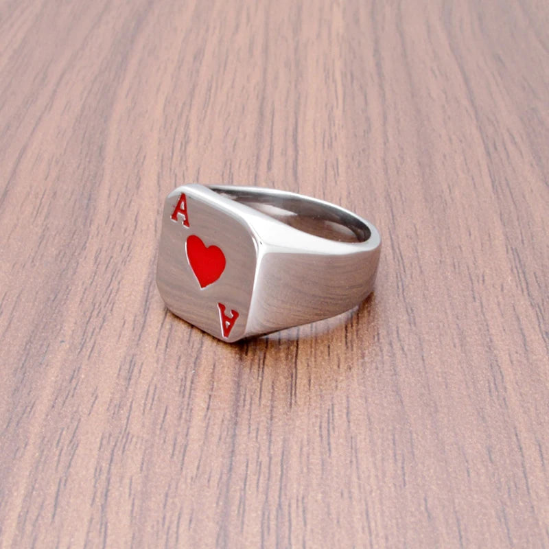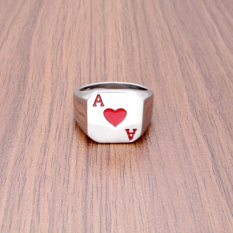 Each ring is crafted from high-quality stainless steel, ensuring durability and resistance to rust or tarnish. The Ace Gold Plated ring features a premium gold plating for a luxury finish.